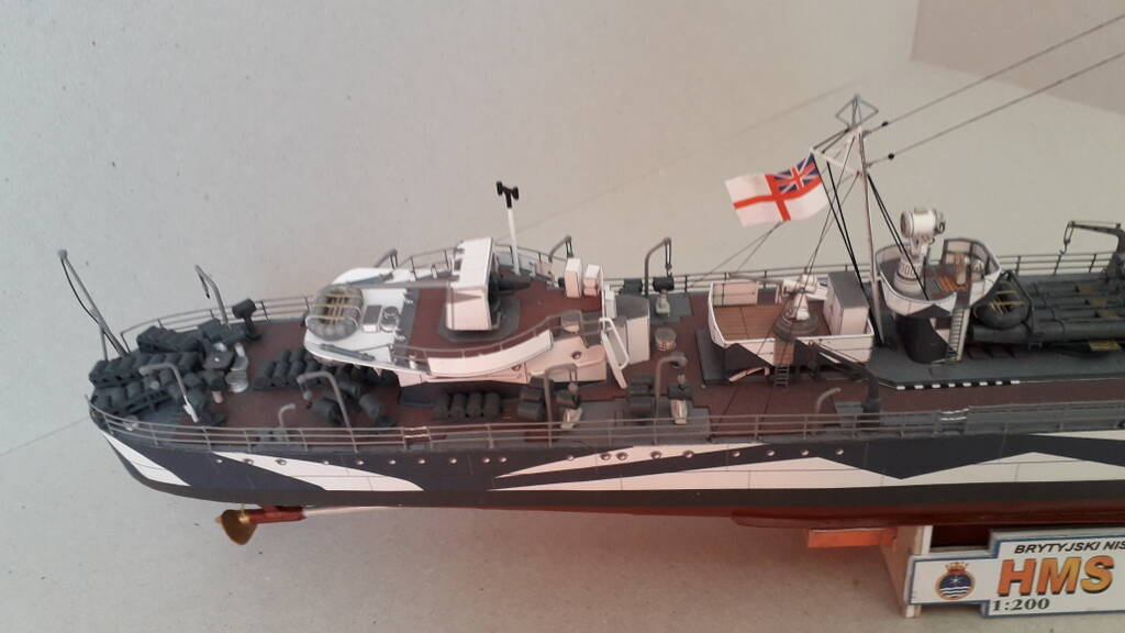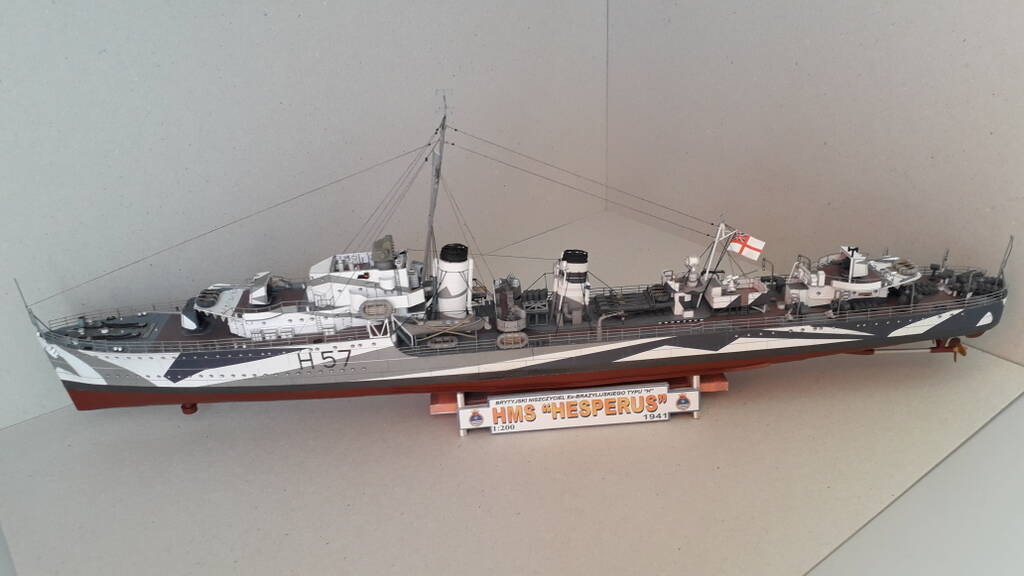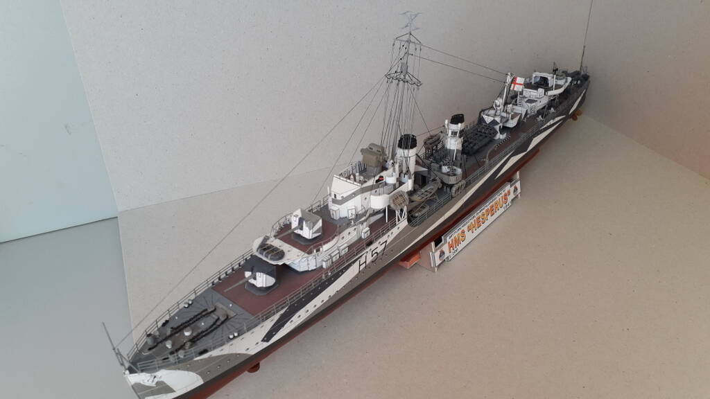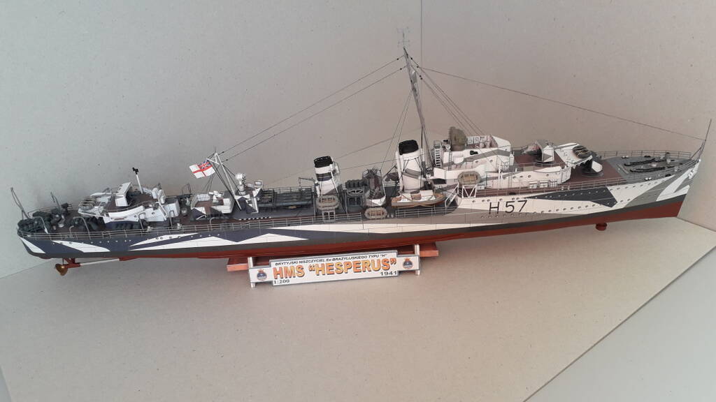 Уважаемые коллеги! Представляю модель эсминца Hesperus на 1942 год. Эсминец был заказан в Англии правительством Бразилии. После начала ВМВ выкуплен Британией и вклбчен в состав Ройял Нэви. Активно участвовал в боевых действиях на Средиземром море, в Атлантике. Сопровождал конвои, входил в состав противолодочных групп. Совместно с другими кораблями уничтожил 5 германских подводных лодок. В 1946 году списан и сдан на слом.