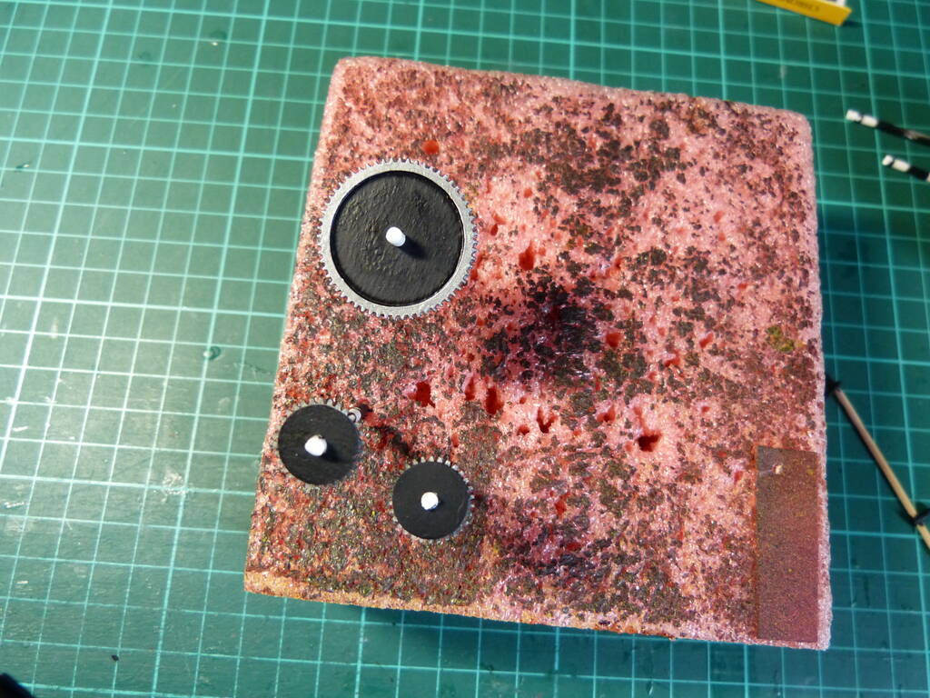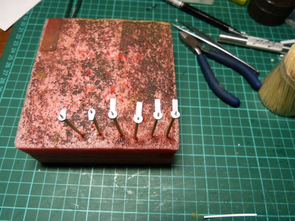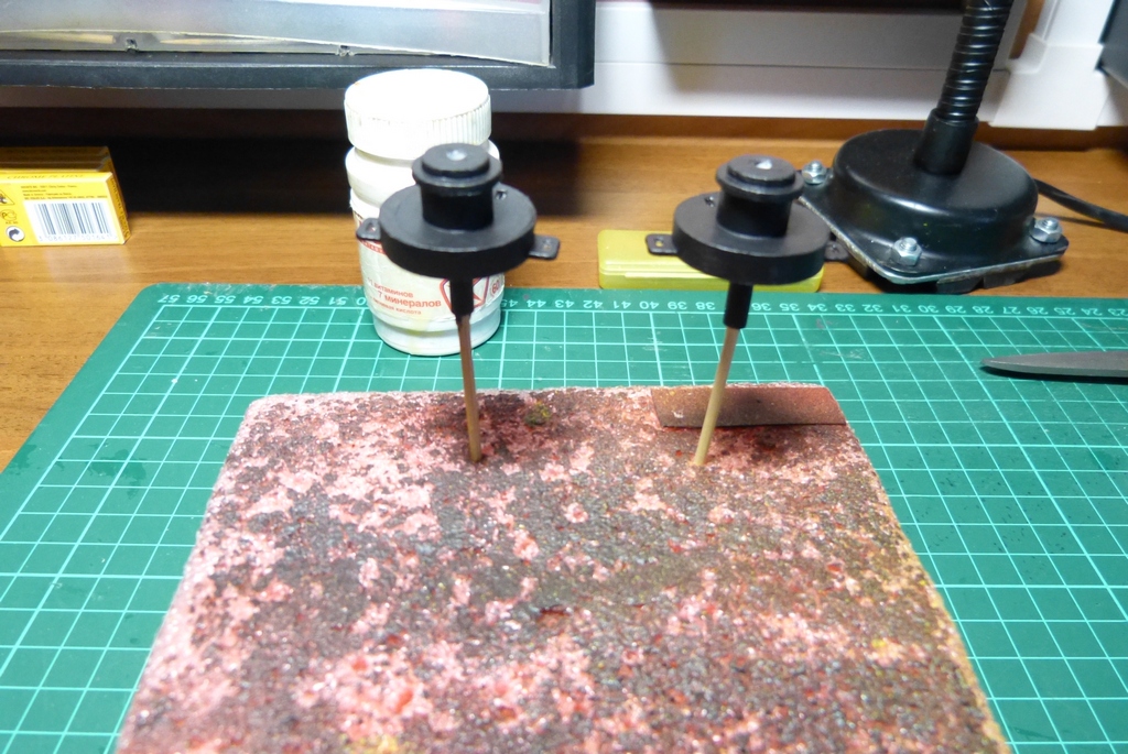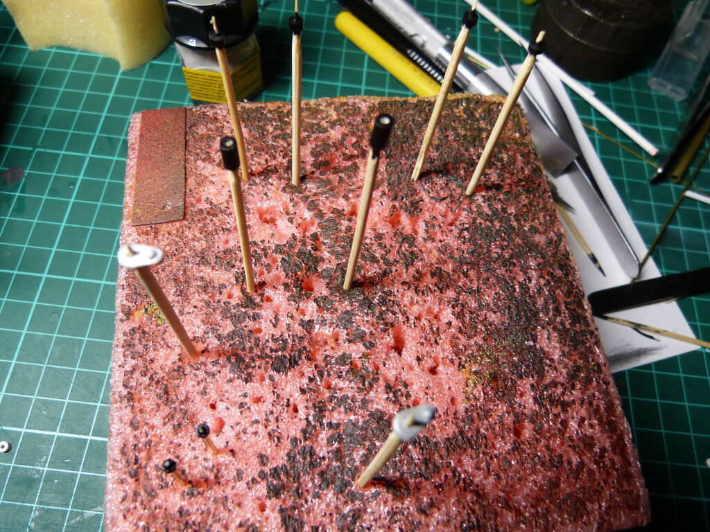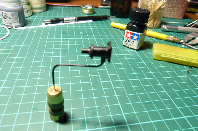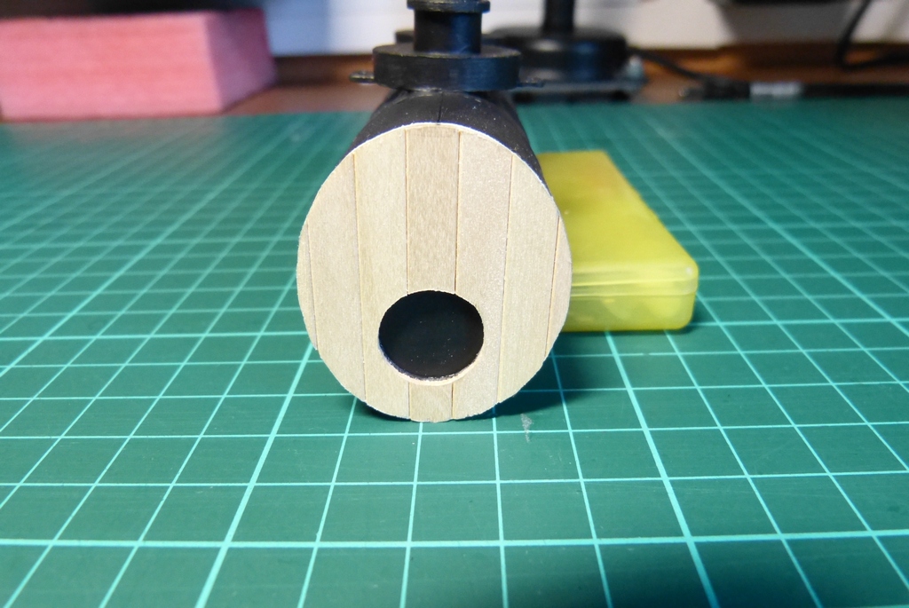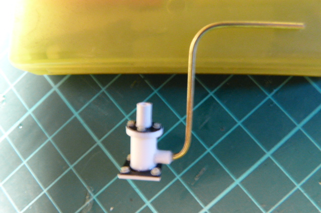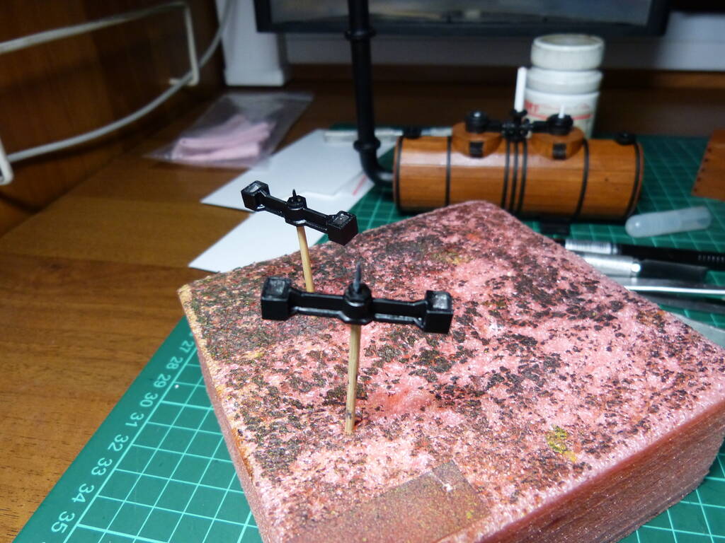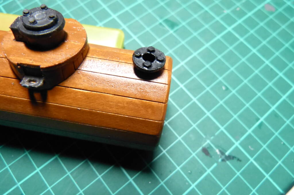Дымовая труба,поворот трубы к котлу делался так : набрано бутербродом,потом зашкурено,пропитано суперклеем и обработано наждаком и покрашено,труба тоже крутилась из офиски,пропитывалась суперклеем на ручной дрели обработана наждаком приклеена к повороту и все вместе покрашено.Дымовая труба на котле