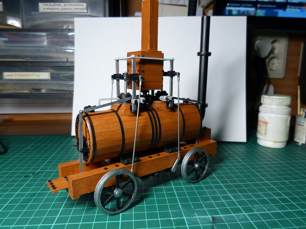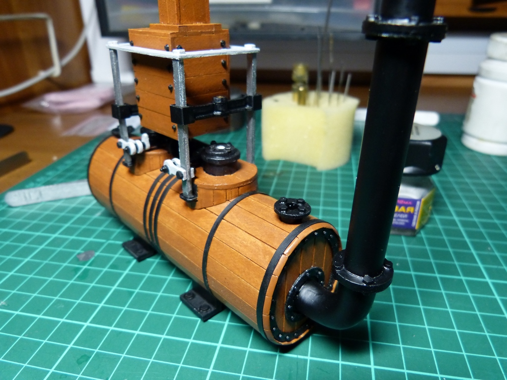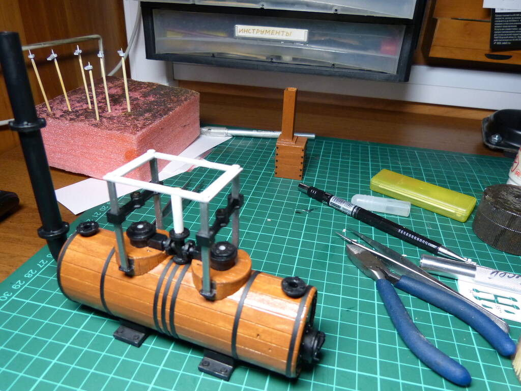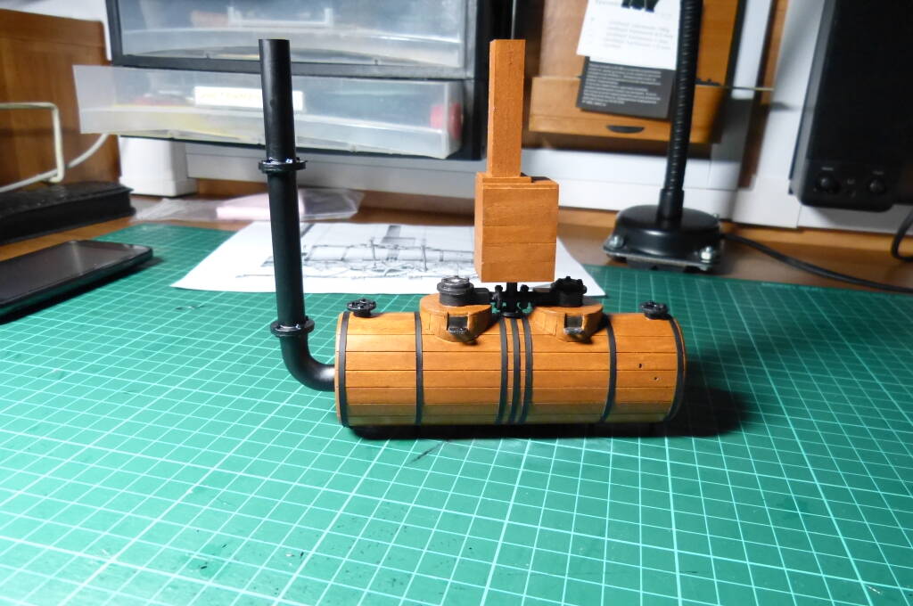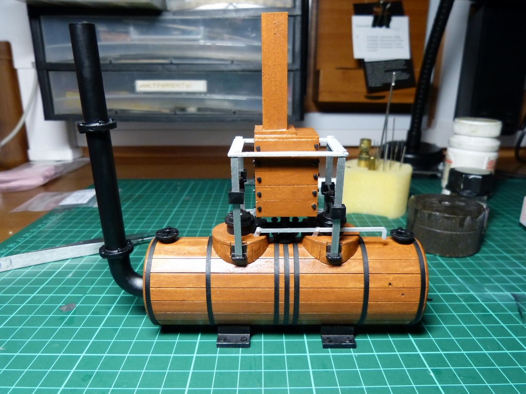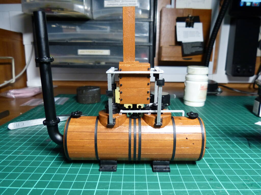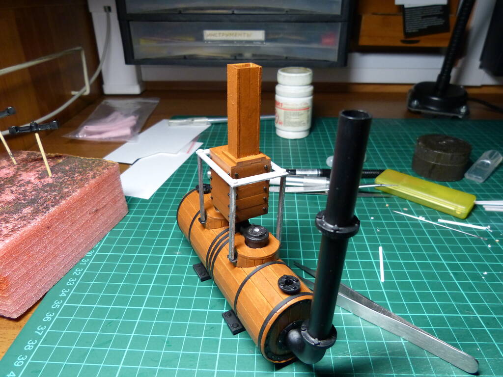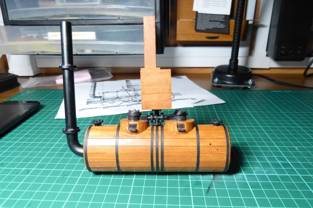Выяснилось что котел у Моделика не правильный,в модели бочка дана круглой но у прототипа она овальная и поэтому исходя из переделки котла последует переделка и подгонка всех механизмов.Далее в Моделик не дал кожух для трубы отвода пара из ПРМ.