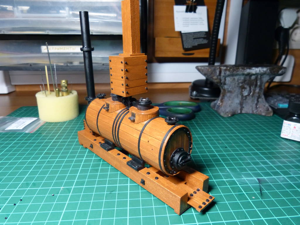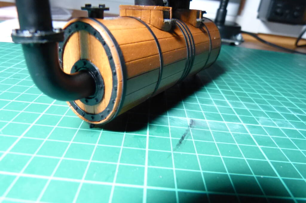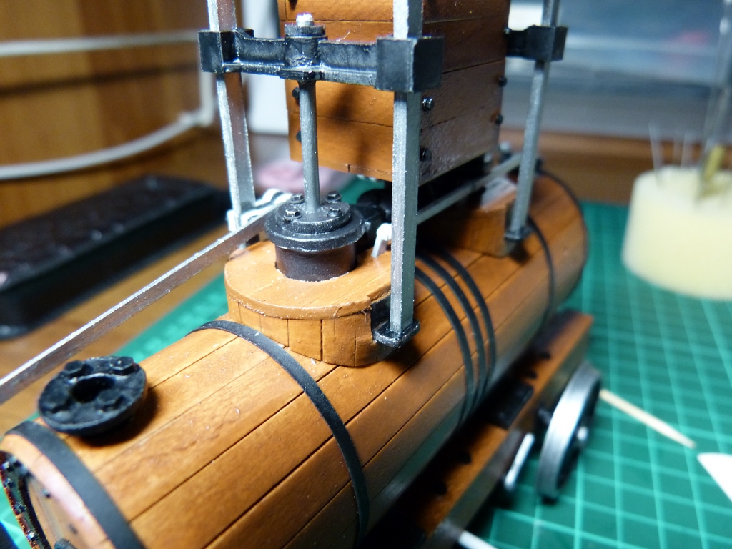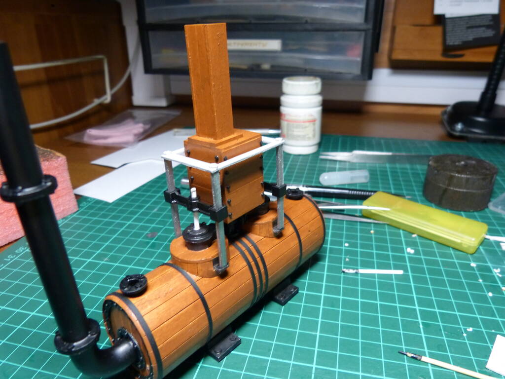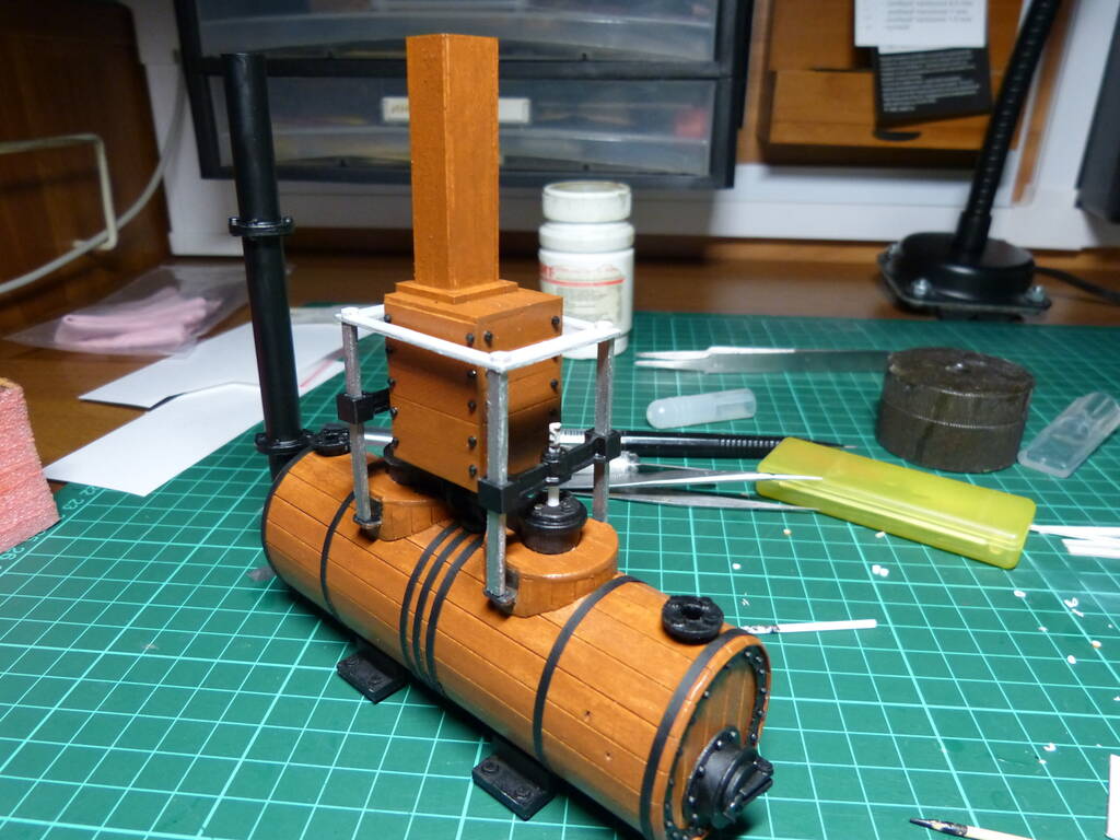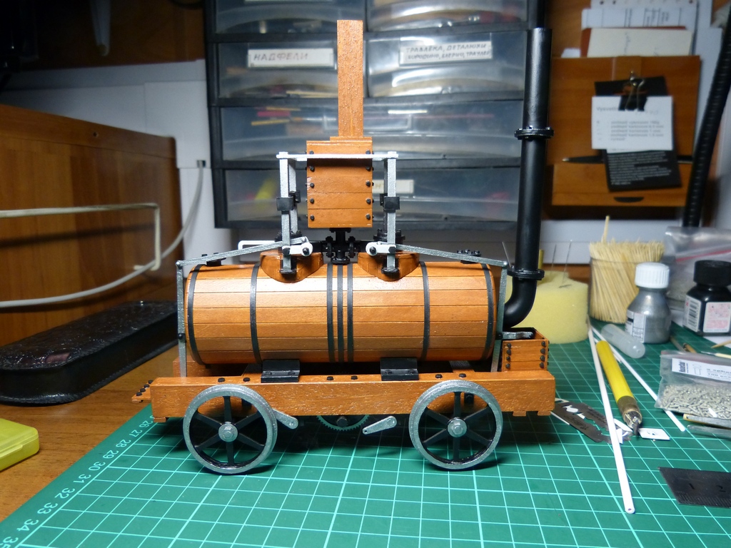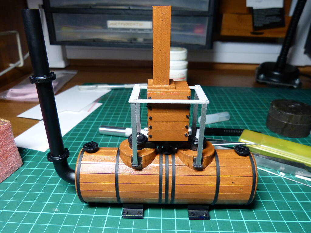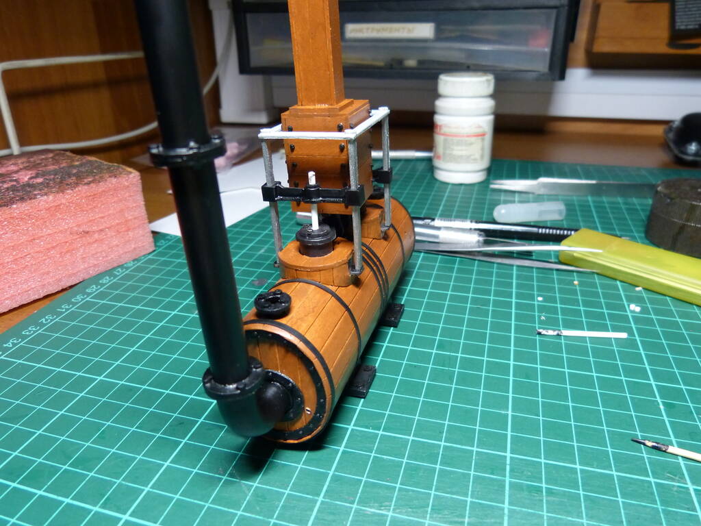 Выяснилось что котел у Моделика не правильный,в модели бочка дана круглой но у прототипа она овальная и поэтому исходя из переделки котла последует переделка и подгонка всех механизмов.Далее в Моделик не дал кожух для трубы отвода пара из ПРМ.