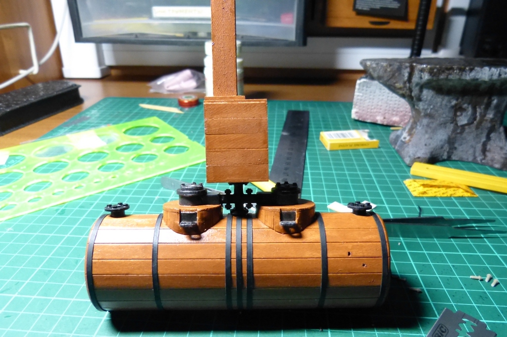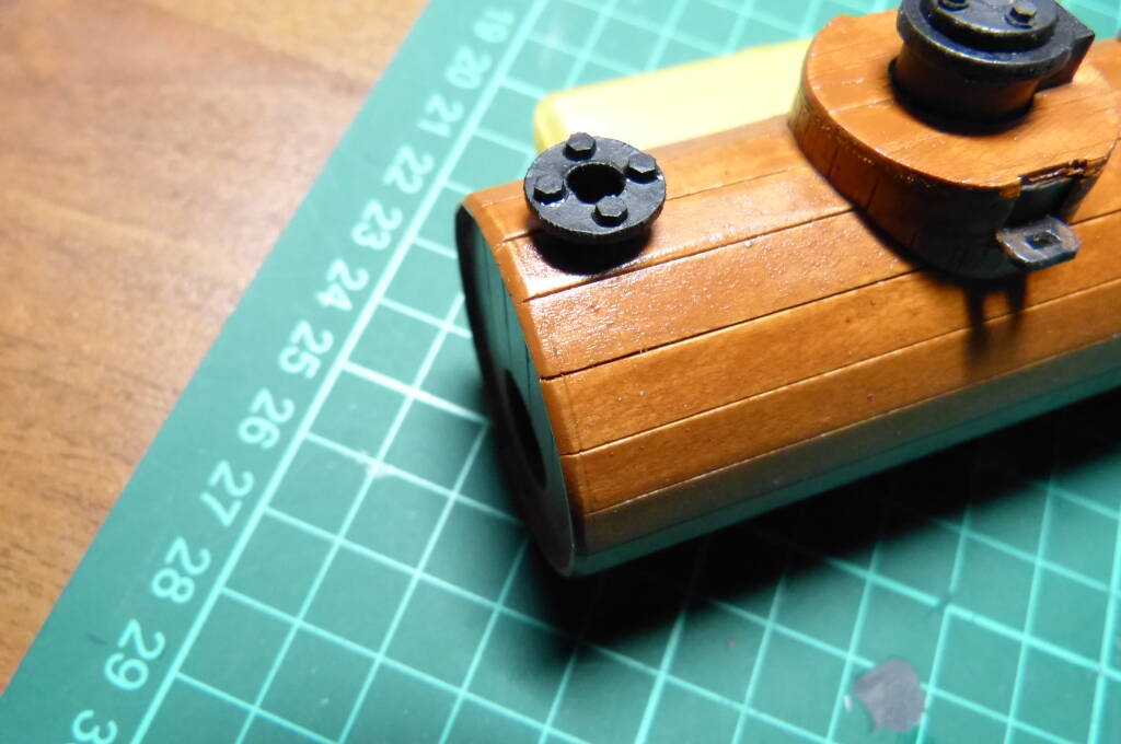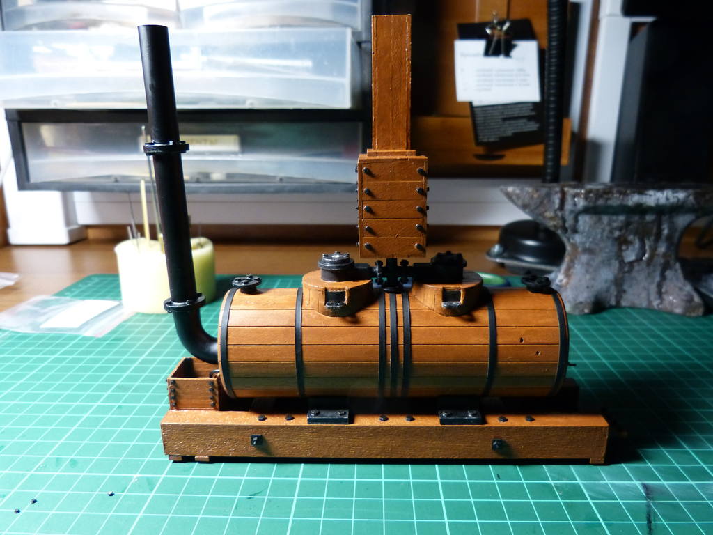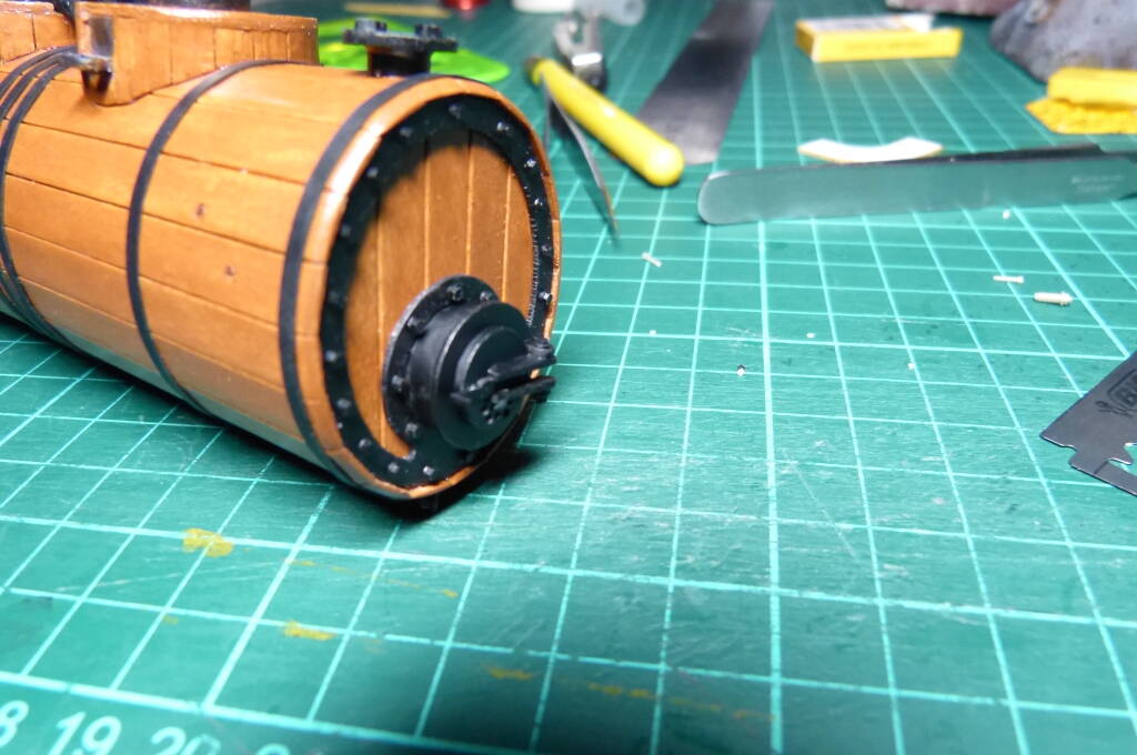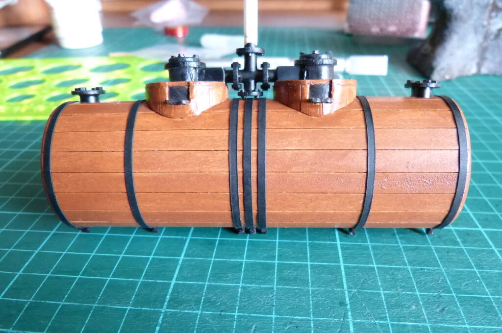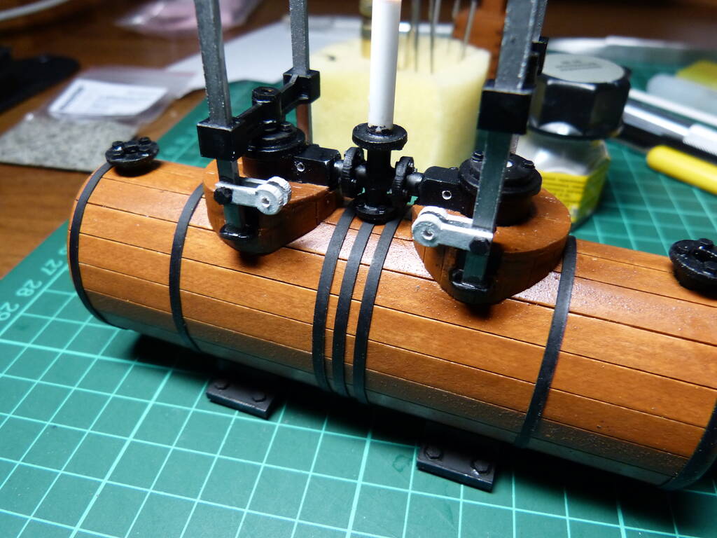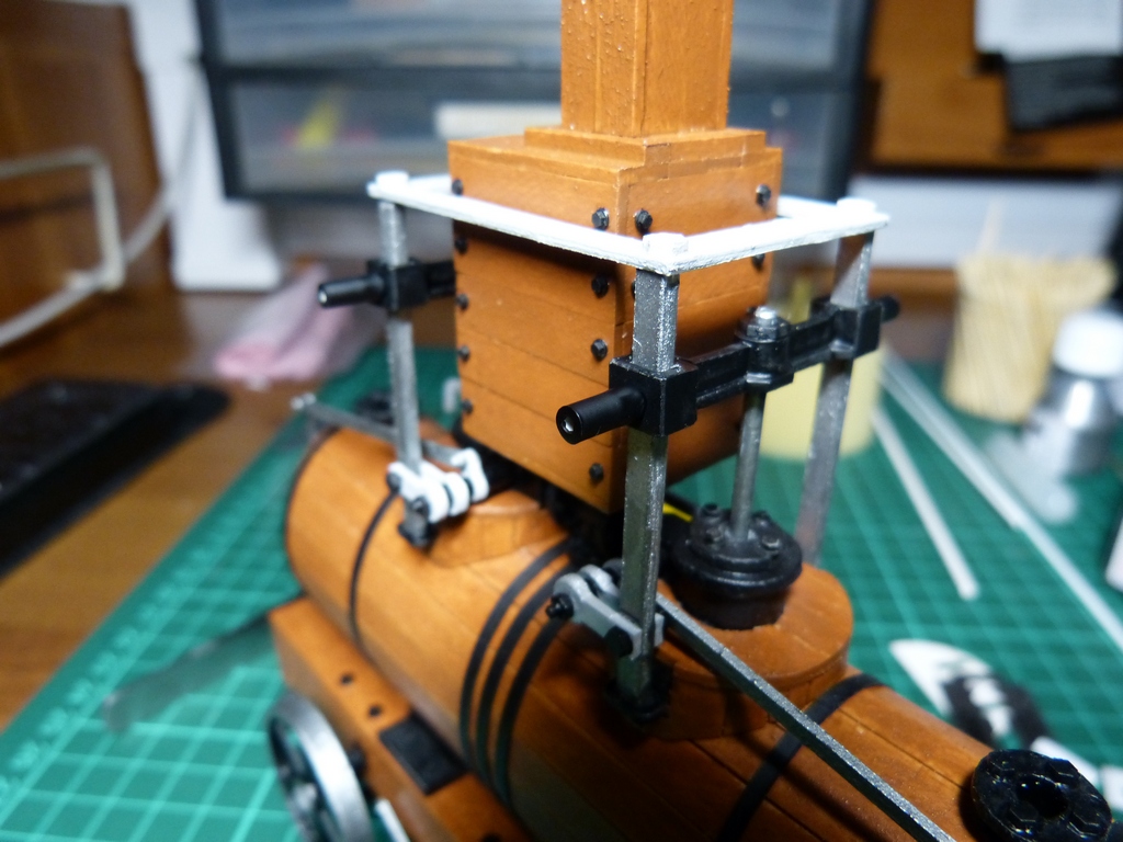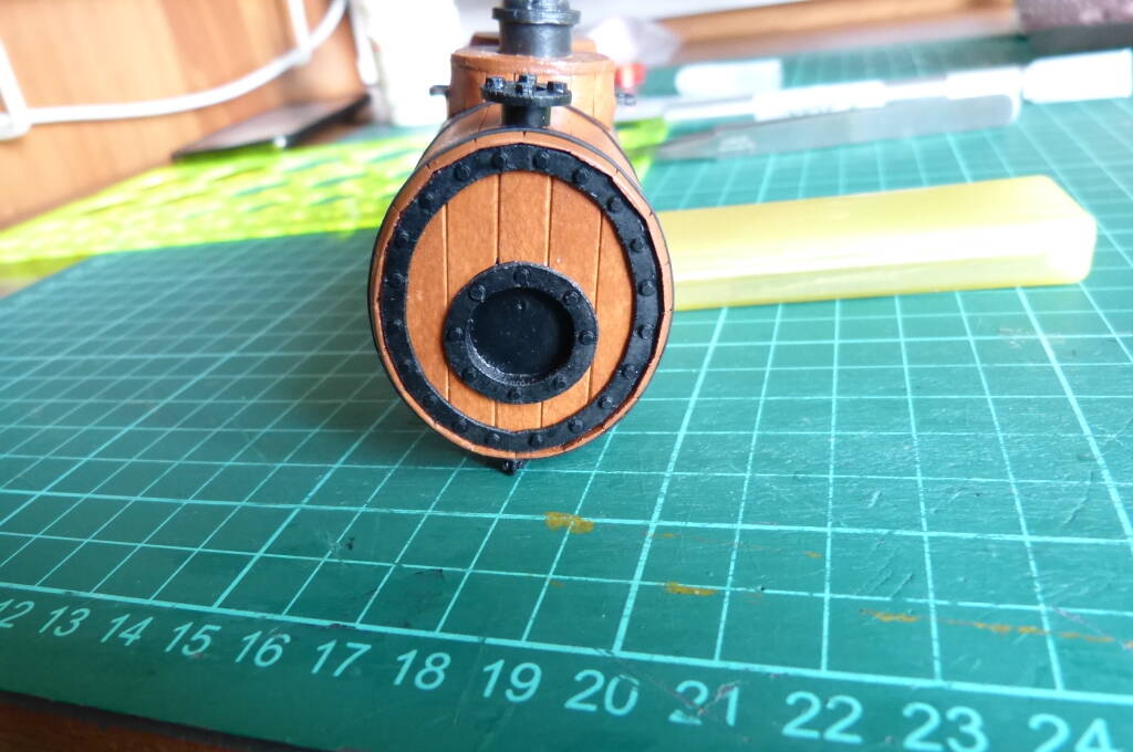 Выяснилось что котел у Моделика не правильный,в модели бочка дана круглой но у прототипа она овальная и поэтому исходя из переделки котла последует переделка и подгонка всех механизмов.Далее в Моделик не дал кожух для трубы отвода пара из ПРМ.