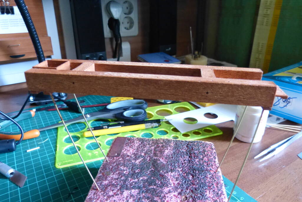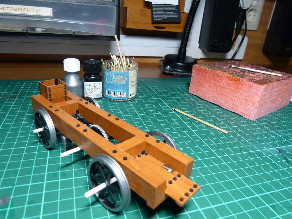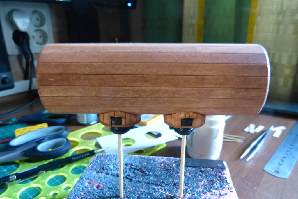 шпон липа , рейки липа , картон , чертежный ватман , проволока , покраска текстурное покрытие тик , тамия акан.