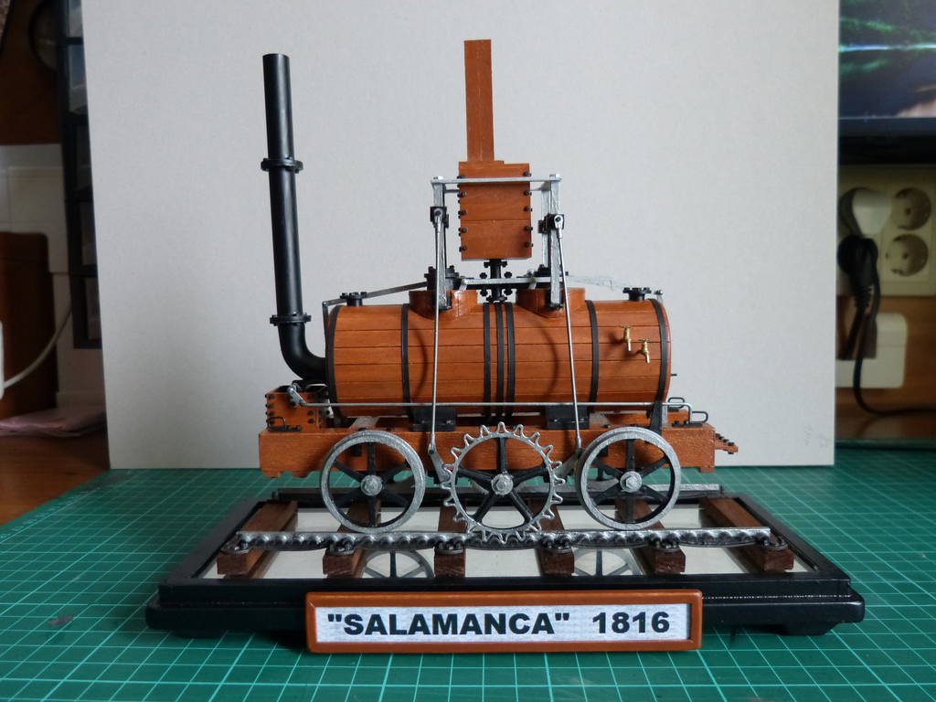 Саламанка была также первым локомотивом с реечной передачей, использовавший запатентованную систему Джона Блекинсопа зубчатой железной дороги. Единственная зубчатая рейка была проложена с внешней стороны путей и задействовалась колесом с левой стороны паровоза. Зубчатое колесо приводилось в движение парными цилиндрами, встроенными в верхнюю часть котла. Поршни работали с передаточным рычагом, а не управлялись противоходом, как у большинства ранних паровозов. Эти двигатели проработали до 20 лет.