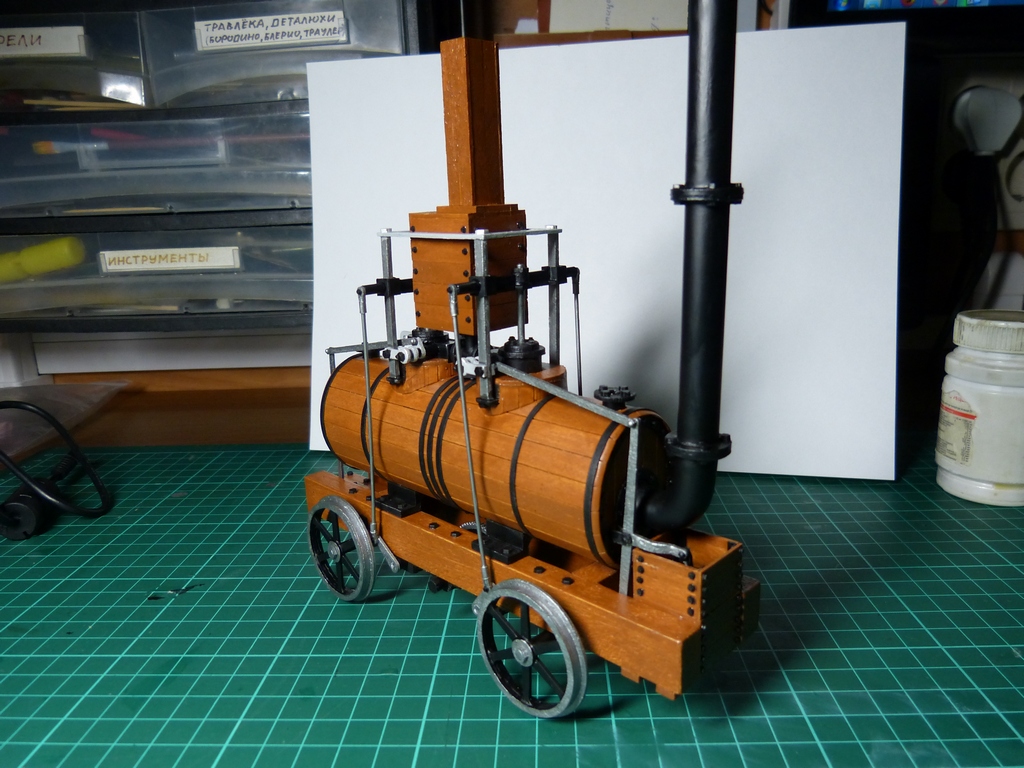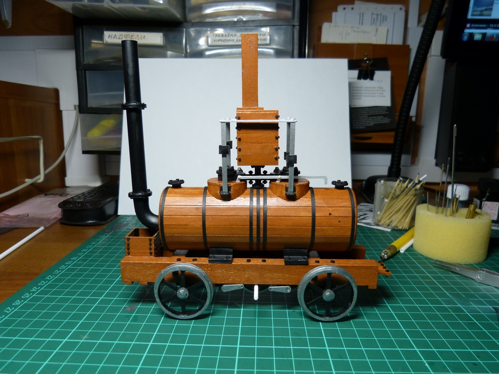 Выбор на этот паровоз пал потому что это первый паровой механизм где были применены два паровых цилиндра и располагались они в тандеме на котле.