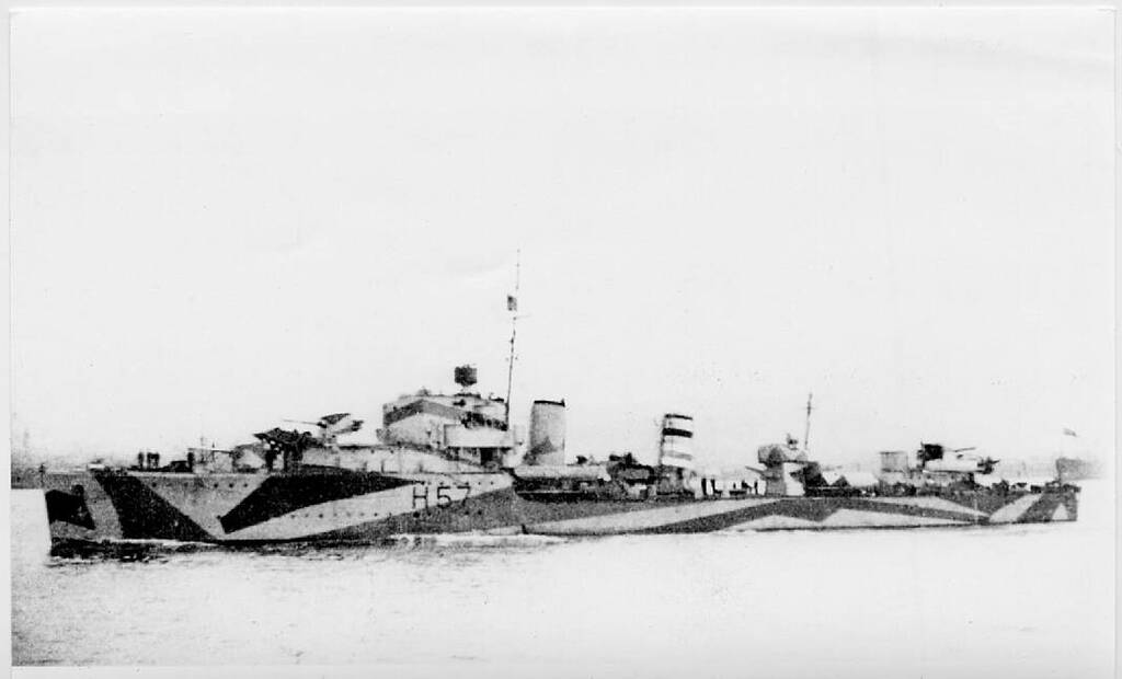 На фото видно, что эсминцы на ходу, но флаги на флагштоках. Вымпелов тоже не видно.